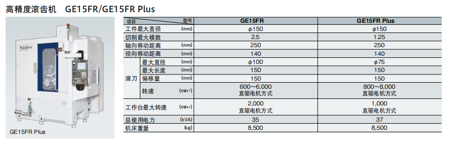 • · 高精度滾齒機GE15FR/GE15FR Plus滿足客戶對減速齒輪等應用的高精度和高速加工的要求。