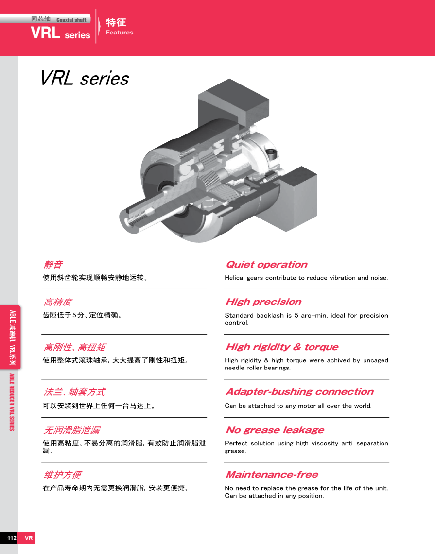 VRL系列產品詳細介紹請下載 文件  VR同心軸系列產品   (110-139頁)了解。