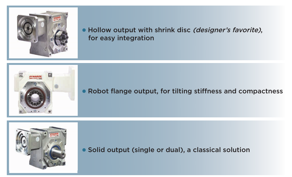 • · Dynabox 蝸輪蝸桿減速機節省空間的結構:最緊湊的正交設計,具備最大的適應性。